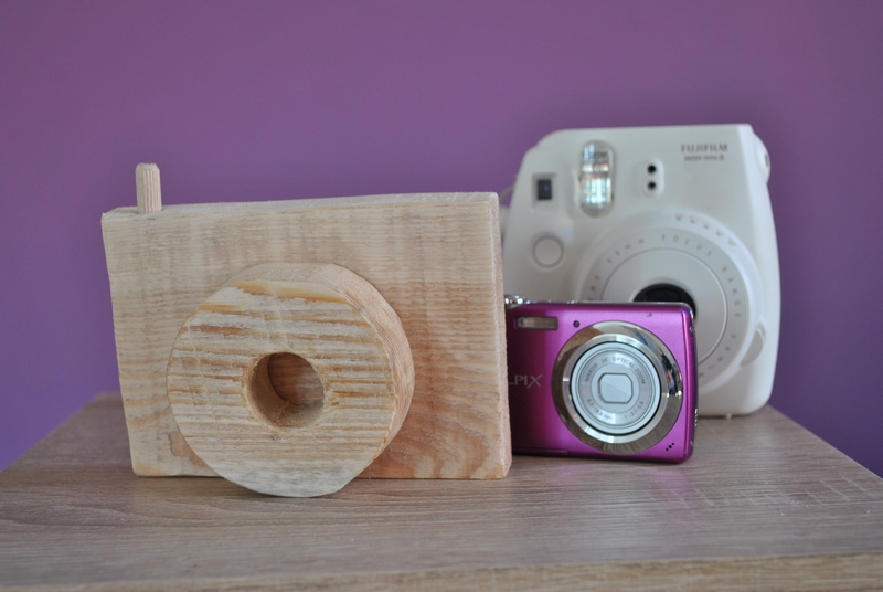 Zawsze towarzyszył mi jakiś aparat, mam ich kilka w domu i planuję ładnie poustawiać je gdzieś na widoku. Całkiem niedawno wpadł mi do głowy pomysł, by do skromnej kolekcji prawdziwych aparatów dorobić drewniany. Powstał taki oto gagatek:
